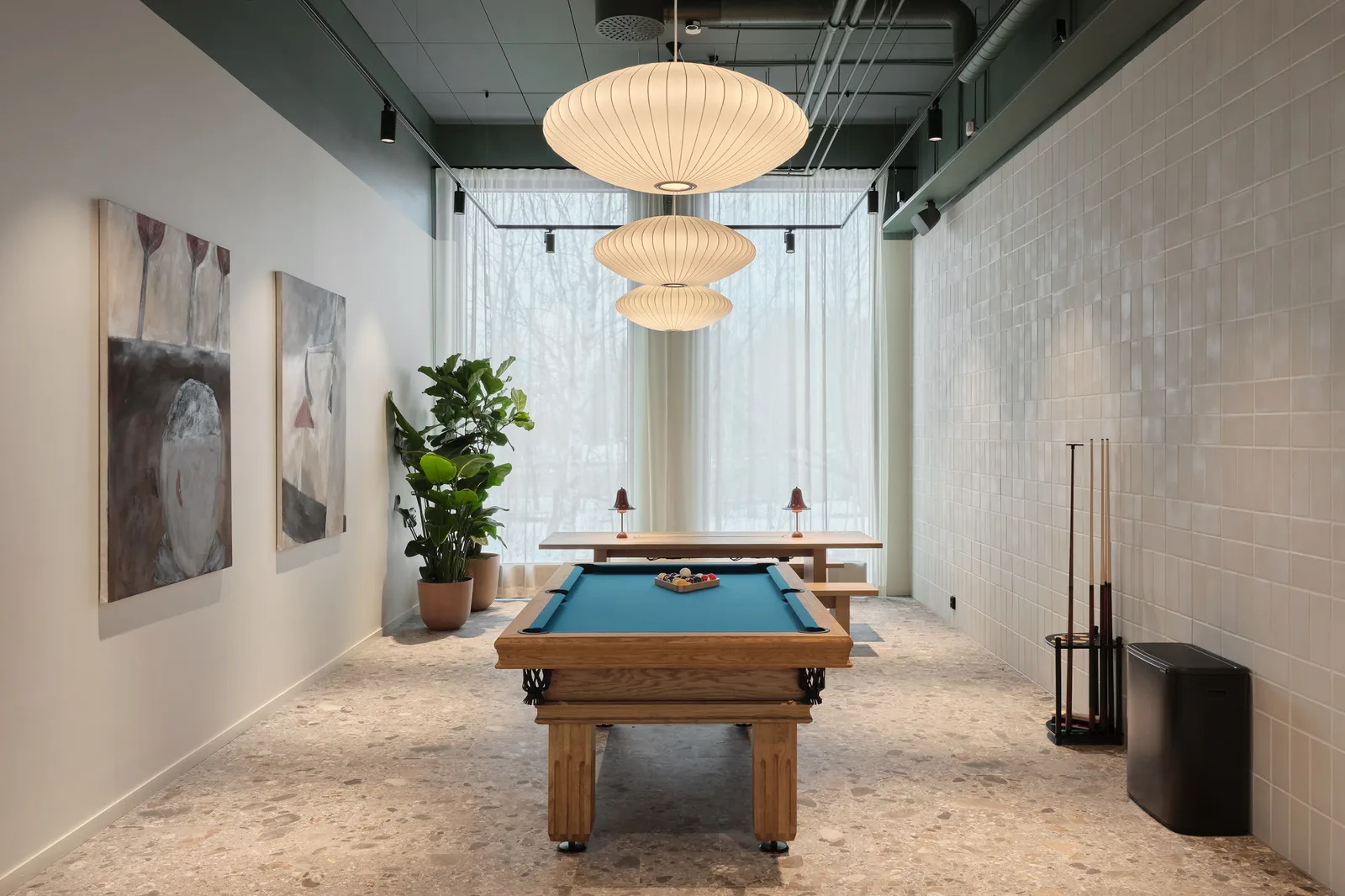 Interiérový design moderního hotelu Noli v kampusu Otaniemi. Prostory kombinují skandinávskou jednoduchost s hravými prvky — od společenských zón s kulečníkovým stolem a designovými svítidly po útulné pokoje s přírodními materiály. Důraz na terrazzo podlahy, keramické obklady a nadčasovou paletu tlumených tónů.